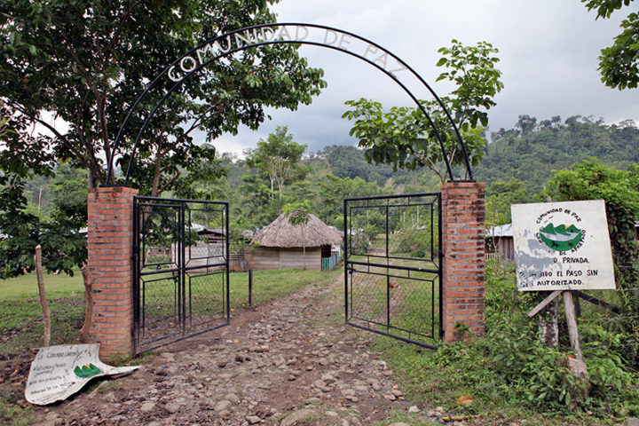 “Proibida a entrada sem autorização!”, diz a placa na entrada da Comunidad de Paz de San José de Apartadó, na Colômbia. Dentro da comunidade, mais um dia começa tranquilo: as mulheres acendem os fogões à lenha, enquanto os homens saem para trabalhar no cultivo de cacau e as crianças se arrumam para o colégio. Mas a tranquilidade atual esconde uma história de mais de três décadas de violência.