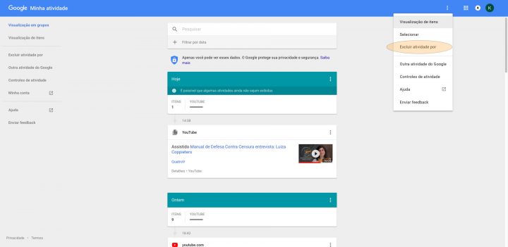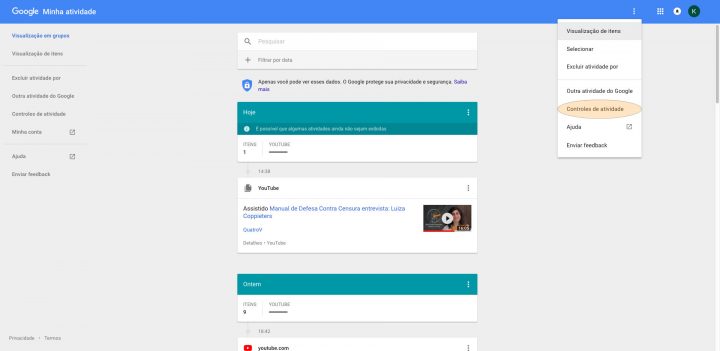 1 – Acesse o “Google Minha Atividade” nele é possível ver as informações coletadas pelo Google sobre você. Como seu histórico de buscas.