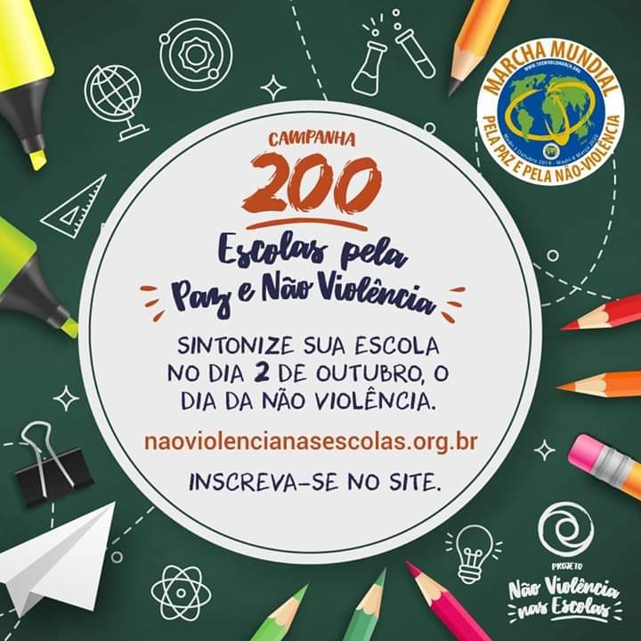 Campanha das 200 Escolas é uma ação de mobilização socioeducativa que pretende incentivar escolas do Brasil a celebrar, estudar e difundir a os Ideais de Paz em base a metodologia da Não Violência.