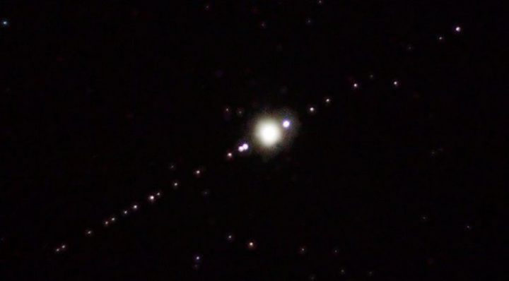 A nossa visão era ainda mais clara do que nestas imagens. E pudemos ver duas “filas” de pontos luminosos, perfeitamente alinhados, equidistantes uma da outra, movendo-se a grande velocidade e a uma distância incalculável. Dois dias antes, alguns amigos já tinham observado a mesma coisa e tinham-se interrogado sobre a natureza destes “objectos não identificados”. Ouvindo na rádio percebemos do que se tratava! Portanto, não fizemos interpretações irracionais. Mas a percepção directa, e pela primeira vez, deste fenómeno que nada tem de natural, deixa uma sensação estranha, dividida entre fascínio, loucura, preocupação e que estranho!