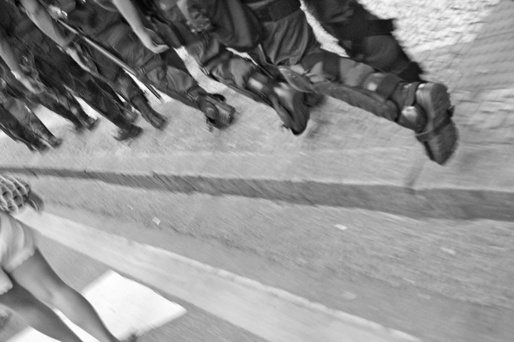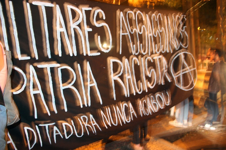 – Certa vez, caminhando bucólico entre duas pistas de alta velocidade em Laranjeiras, em frente à sede do governo do Estado vi uma faixa negra, com o “A” circunscrito e os seguintes dizeres “Contra o genocídio nas favelas / A ditadura nunca acabou”. Fiquei dias com aqueles dizeres na cabeça–na minha memória foram se encaixando as peças de um quebra cabeças – pessoas pagando parra morrer na “saúde” privada ou na fila do SUS; cenas de jovens covardemente assassinados pelo Estado, que não é de agora. Existe democracia no Brasil? Se existe, onde ela está?