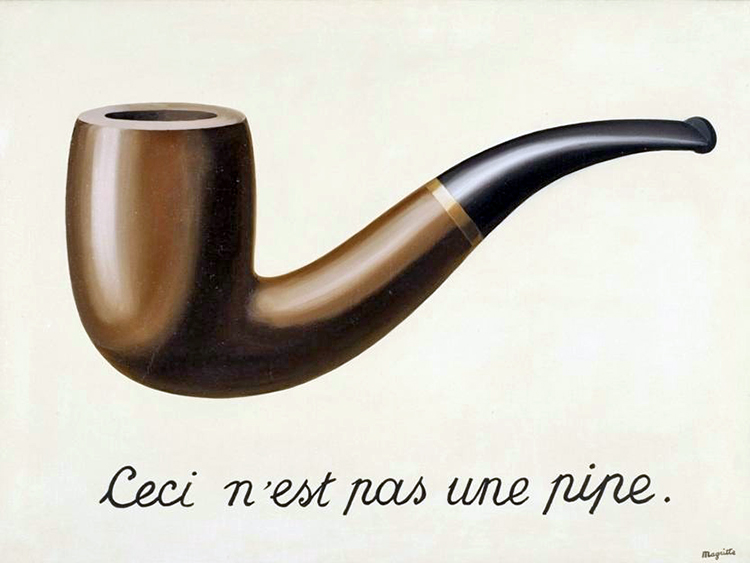 *Isto não é um cachimbo. René Magritte. A traição das imagens. 1929. Óleo sobre tela. 63,5 x 93,98 cm. Museu de Arte do Condado de Los Angeles.
