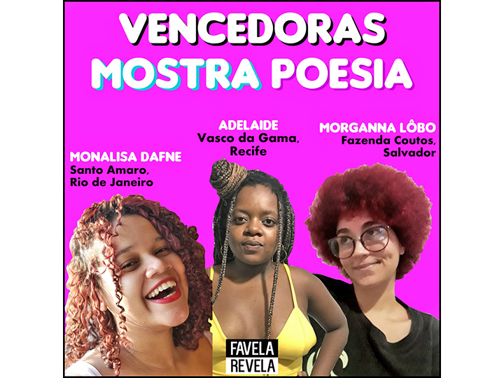 Três mulheres moradoras de periferias brasileiras foram as ganhadoras da Mostra de Poesia Favela Revela, que selecionou poetas, poetisas e pessoas criativas de todo o Brasil. A iniciativa teve como objetivo protagonizar a criatividade artística, a força e resistência que vem dos subúrbios, através do reconhecimento e divulgação de suas obras em tempos de pandemia.