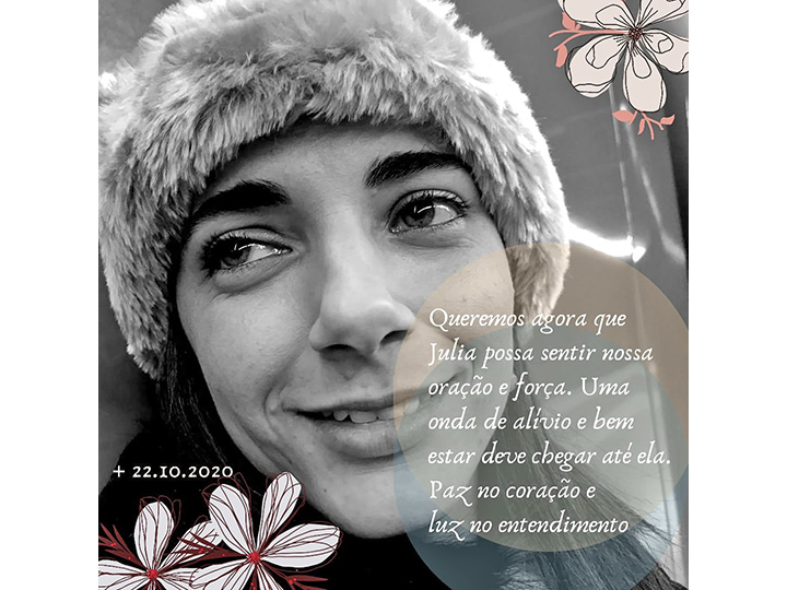 O corpo de Júlia foi cremado ontem, domingo 25, em Barcelona. Quem quiser prestar suas homenagens é só acessar a página da campanha no Instagram @todosporjulia. A família e amigos agradecem a todos que se envolveram na campanha, seja compartilhando, divulgando, orando ou doando amor.