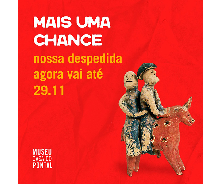 Devido ao sucesso junto ao público, e para atender a todos que gostariam de ter ido e não puderam, a direção do Museu Casa do Pontal decidiu manter aberta a exposição “Até logo, até já”, com cerca de duas mil obras de seu abrangente e raro acervo de arte popular brasileira, até o dia 29 de novembro de 2020. Esta data de término é definitiva, para se atender ao cronograma de mudança de todo o acervo, com mais de nove mil obras,para a nova sede, na Barra da Tijuca, onde estarão a salvo de inundações.