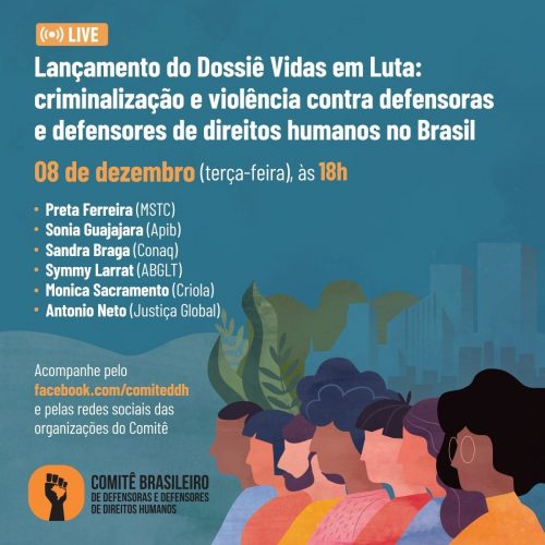 O Dossiê Vidas em Luta – criminalização e violência contra defensoras e defensores de direitos humanos no Brasil (Período 2018-2020/1) foi lançado na terça-feira (08), às 18h, em debate online transmitido pelas redes sociais do Comitê e das organizações integrantes.