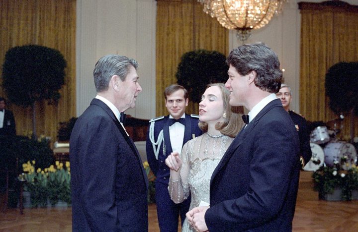 Para acrescentar a esta confusão entre os termos e facções, no início/meados da década de 90, o Partido Democrático nos EUA começou a rejeitar sua ideologia liberal de centro-esquerda e começou adotar as políticas “neoliberais”. Na verdade, muitos consideram a Era Clinton (1992 – 2000) como o período dos esteróides para o neoliberalismo. Sob a direção de Alan Greenspan, que também foi o principal assessor econômico de Nixon e Reagan, o governo de Clinton praticamente acabou com as restrições aos monopólios corporativos nas áreas de comércio internacional, mídia, do sistema prisional e sistema bancário. As últimas duas décadas do século XX, a Era Reagan-Clinton, foram basicamente um golpe neoliberal.