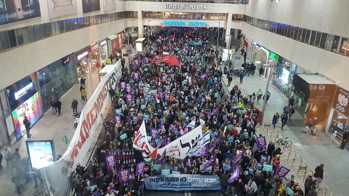 Cerca de mil pessoas, judeus e árabes, marcharam juntos em 1º de fevereiro para protestar com o seguinte texto: “O acordo entre Trump e Netanyahu é uma ameaça ao futuro de ambas as nações. É um acordo unilateral que não trará paz, justiça ou resolução de conflitos, mas espalhará ainda mais a violência. Leia o artigo completo aqui.