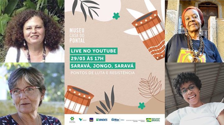 O Museu do Pontal promove no próximo dia 29 de março, às 17h, a live “Saravá, Jongo, Saravá – Pontos de luta e resistência”, em seu canal no YouTube. Participarão da conversa Maria de Fátima da Silveira Santos, liderança do Jongo de Pinheiral (RJ); Jussara Adriano de Souza, jovem quilombola e integrante do Jongo do Bracuí(Angra dos Reis, RJ); Elaine Monteiro, coordenadora do Pontão de Cultura do Jongo/Faculdade de Educação UFF, e Martha Abreu, professora do Instituto de História da UFF e pesquisadora da cultura afro-brasileira.