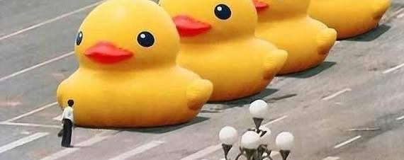 A imagem que ilustra a coluna de Hoje (7 de junho de 2021) também guarda conexão com junho de 2013. Naquele ano, uma paródia com a foto icônica da “Tiananmen Square” viralizou. Em vez dos tanques, grandes patos de borracha ironizavam os então 27 anos daquela repressão política.