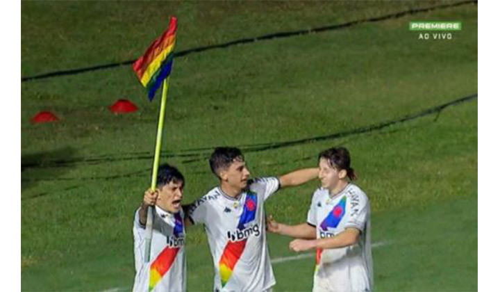 O Vasco joga com um uniforme diferente do habitual, hoje a camisa é branca. E a faixa diagonal, tradicionalmente preta, ostenta enfaticamente as cores do arco-íris, as cores do Dia Mundial do Orgulho LGBTQIA+. Mesmo as bandeiras dos quatro cantos de onde é cobrado o escanteio lembram-nos que hoje é um dia especial. E Germán Cano corre em direção do canto do campo, tira o mastro da bandeira do chão, levanta o braço segurando-o orgulhosamente, agita a bandeira e chama os seus que se unem à festa. O estádio está vazio, mas o Brasil inteiro aplaude de pé. O acenar da bandeira do arco-íris como gesto de respeito para uma comunidade historicamente marginalizada e, hoje, mais do que nunca, alvo da violência institucional do governo Bolsonaro, tem um significado que vai para além da exultação por um gol. Não importa que o Vasco agora jogue na segunda divisão, não importa que não vença um titulo há anos, não importa que seus jogadores não sejam convocados na seleção, não importa. Ao transformar uma simples comemoração em uma atitude, uma declaração de intenções, uma afirmação de respeito, autonomia, identidade, em um gesto simbólico para milhares de pessoas que muitas vezes não têm nem a possibilidade, nem a força para revelar sua identidade, hoje, um jogador do Vasco, permite que o Futebol volte a incidir na realidade, como cem anos atrás, para lembrar a todos que a luta pelos direitos civis não pode parar. Vasco, orgulho do Futebol Brasileiro. Germán Cano, atleta, jogador de futebol, homem livre!