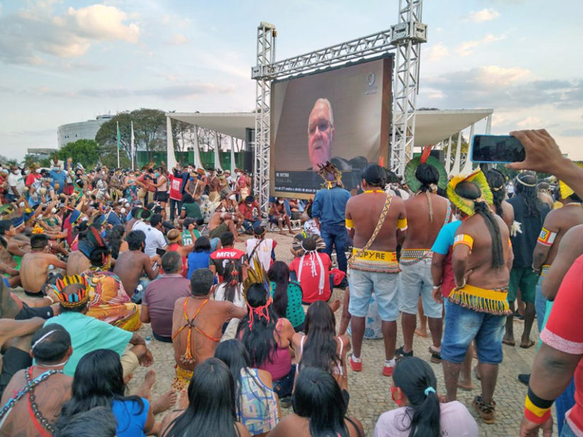 Mais de seis mil indígenas que acompanhavam o julgamento, em frente ao Supremo Tribunal Federal (STF), tiveram de voltar ao Acampamento Luta pela Vida, instalado ao lado da Esplanada dos Ministérios, em Brasília, sem saber qual a decisão final do caso.