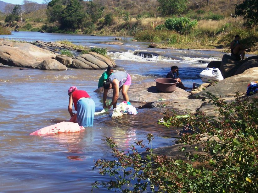 A menina moça da beira do rio que lava a roupa sorrindo na água corrente com sabão em barra e rala os dedos ao esfregar a calça surrada que precisa secar de madrugada pra usar de novo pra n’outro dia ao acordar e ir pra batalha que só termina após o grupo escolar noturno sem antes de deitar descolar um prato de feijão com arroz e farinha do que restou do almoço comido com a mão quente do dia refrescada por um copo d’água com gosto bom do filtro de barro que fica em cima da pia com panelas arriadas na bica que refletem o sorriso largo da menina já moça que na beira do rio toma banho molhando a cabeça nas águas límpidas iluminadas pela lua d’Oxum que não a abandona nem de noite e nem de dia por ser sua filha que luta e sonha num final de domingo que antecede a segunda que se estende até sexta-feira pra Oxalá libertar do jugo que se repetirá por toda vida se não acreditar naquilo que não se vê com os olhos mas sente no coração criando uma distopia que precisa se materializar pois tudo que lhe resta é imposição ou resquício de uma diáspora que não cabe mais ao seus mas que apesar de toda truculência de quem tenta conter ousa desafiar a força natural dos que vieram da beira do rio de dentro da mata trilhar o caminho de quem como a água do rio corre em direção ao mar