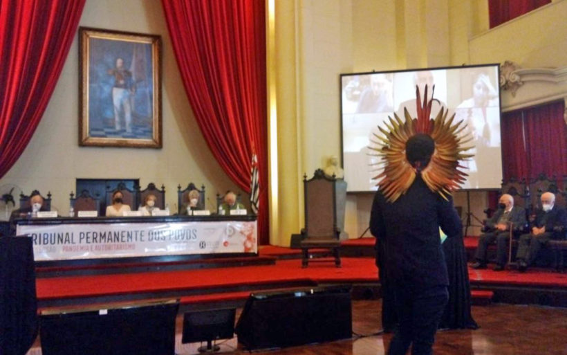 A Apib denunciou os crimes de Jair Bolsonaro no Tribunal Permanente dos Povos (TPP), nesta quarta-feira, 25, junto com a Coalizão Negra por Direitos, a Internacional de Serviços Públicos e a Comissão Arns.