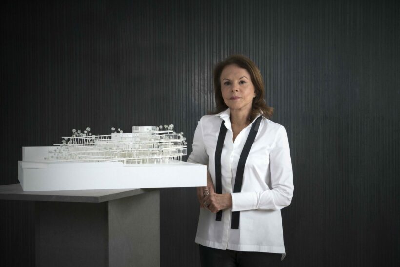 O que tem destacado Elizabeth de Portzamparc no cenário atual da arquitetura, e talvez seja a chave do sucesso para vencer tantos concursos internacionais – em que os participantes são identificados por números, e não nomes – é sua ousadia e a profunda conexão com a natureza. No projeto vencedor em 2021 na China, “Living in the leaves”, em Huizhou, uma região de árvores milenares do distrito de Guangdong, para a construção de casas, cabanas, e um SPA, em uma área de 43 mil metros, ela faz um “manifesto contra o desflorestamento”. Além de todo o desenho arquitetônico que se mimetiza com a natureza, serão usados materiais locais como madeira, pedra e terra. “Ao lidar com uma zona virgem, precisamos fazer como os povos indígenas, e em vez de construir coisas que podem agredir, devemos propor um modo de viver completamente integrado, em respeito total à floresta, co-habitando, inserindo um novo elemento no ecossistema, enriquecendo este ecossistema sem agredir. Nós temos que conviver com a natureza, com delicadeza, e fazer parte dela”, afirma.