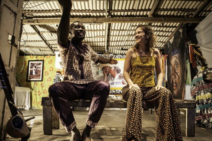 François Moïse Bamba (Burkina Faso) é contador de histórias e ator, e viaja o mundo inteiro ao encontro do seu público. Iniciado na arte do conto por seu pai, é da casta dos ferreiros e foi criado em estreita relação com a tradição da cultura e da arte griô, bases da sua formação como ser humano e como artista. Laura Tamiana (SP/PE) é artista multidisciplinar e também atua como produtora e terapeuta. Seus projetos integram diferentes campos artísticos, frequentemente em diálogo com as tradições populares brasileiras, sempre com o propósito de promover o encontro, a partir de um viés afetivo e de questões em torno de identidade, pertencimento e propósito de vida. Em 2017 os dois artistas iniciaram uma parceria que segue em desenvolvimento com atividades no Brasil e no Burkina Faso, num diálogo entre suas culturas. A essa parceria deram o nome de Ba-kô Burkina Brasil. Em bambara – uma das línguas do Burkina – “ba-kô” significa ao mesmo tempo “nas costas da mãe” e “na outra margem”, simbolizando o convite para ir ao encontro do outro, à descoberta do mundo, a partir de um lugar de acolhimento e cuidado, já que é nas costas que as mães africanas carregam seus bebês.