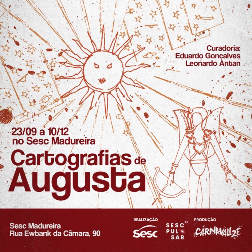 O Sesc Madureira exibe, de 23 de setembro a 10 de dezembro, a Exposição Cartografias de Augusta. A mostra apresenta o acervo e o legado artístico da carnavalesca Maria Augusta Rodrigues, de 81 anos. A exposição presta uma homenagem ao itinerário da artista e a sua dedicação à maior festa popular do país. A carnavalesca é responsável por apresentações históricas do carnaval, como “Domingo” e “O Amanhã”, ambas na União da Ilha do Governador. Pelo Salgueiro, participou das comissões de carnaval que marcaram época durante as décadas de 1960 e 1970. Além do período da Revolução Salgueirense e da Ilha, Augusta teve passagens por Tradição, Paraíso do Tuiuti e Beija-Flor de Nilópolis. A curadoria é de Eduardo Gonçalves e Leonardo Antan e produção do coletivo Carnavalize. A mostra foi contemplada pelo Edital de Cultura Sesc RJ Pulsar.