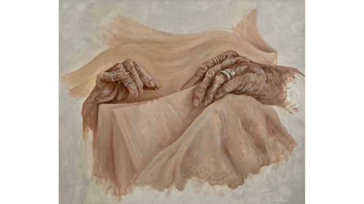 Nas pinturas e desenhos de partes do corpo de mulheres maduras, há um paralelo traçado entre as rugas e as rendas, gerando um debate sobre a pele, a costura da pele, estética e intervenções.