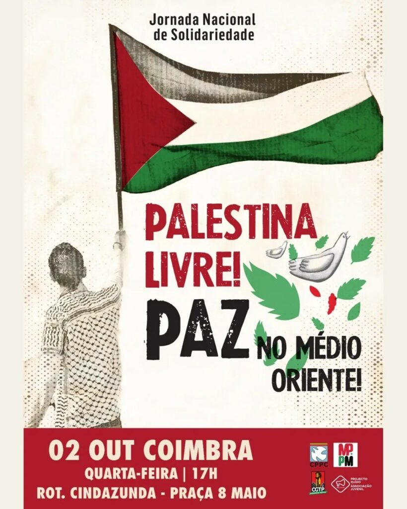 Dando seguimento às muitas iniciativas pela paz e em solidariedade com o povo palestiniano realizadas por todo o país desde outubro de 2023, terá lugar, entre 2 e 12 de outubro, uma jornada nacional de solidariedade sob o lema «Palestina Livre! Paz no Médio Oriente».