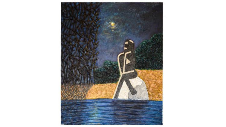 Entre os destaques da exposição estão o tríptico “Saravá (flor-de-lis)”, o díptico “Mangue-Vermelho”, e telas como “A Ribeirinha”, “Queimada”, “Mato-à-Mata” e “Garimpo”. A série TEOTL (Gaia), composta por trabalhos em que o pictórico e o escultórico se fundem para retratar a vegetação, traduz a exuberância da Natureza por meio de formas e texturas que sugerem movimento e vida. Complementando o conjunto, as esculturas “ Hyákinthos” e “ Dáphnē” evocam uma síntese poética entre arte e Natureza.