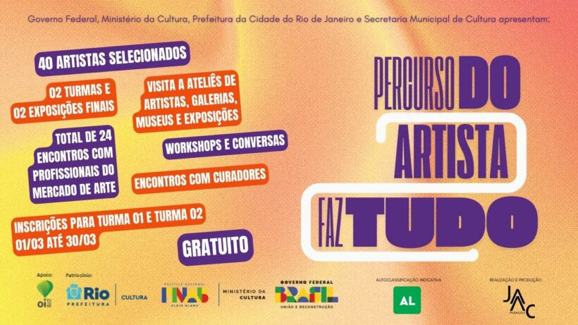 As atividades acontecerão em espaços culturais da Prefeitura do Rio, e vai selecionar 40 artistas em início de carreira, distribuídos em duas turmas ao longo do ano de 2025.