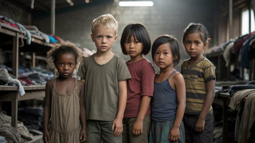 Asia: En India y Bangladesh se explota a los niños en fábricas textiles, curtidurías y talleres clandestinos. En Dhaka, la capital de Bangladesh, una investigación de The Guardian (2020) reveló que niños de entre 10 y 14 años trabajan hasta 14 horas diarias en la confección de ropa para marcas internacionales. Muchas de ellas son hijas de refugiados rohingya, sin acceso a la escuela ni protección legal.