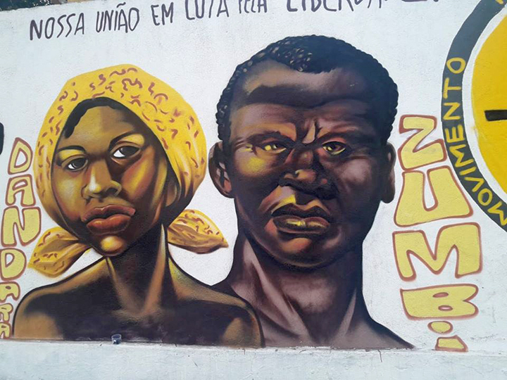 Dandara e Zumbi dos Palmares no muro do Quilombo Urbano Agbara Dudu.
