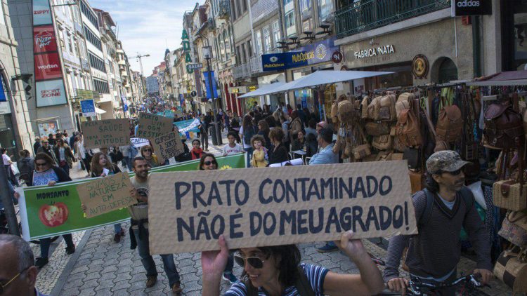 Ativistas foram às ruas em Porto, Portugal, contra os organismos geneticamente modificados (OGM), químicos utilizados na agricultura e contra a empresa de herbicidas Bayer-Monsanto. A concentração iniciou na praça dos Poveiros, por volta das 15h. A mobilização acontece desde 2013, e…