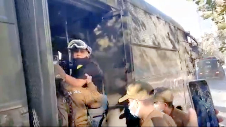 Nas proximidades da Plaza Dignidad, nesta tarde escaldante de 25 de dezembro, a jornalista Claudia Aranda, ao notar a presença de Carabineros não identificados na zona do Parque Florestal, exigiu de um policial que aquelas pessoas prestassem contas, como manda…
