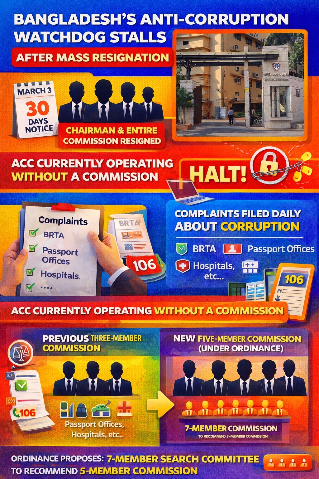 by Asif Showkat Kallol (Dhaka Bureau) The chairman and the entire commission of the Anti-Corruption Commission (ACC) resigned on 3 March. In accordance with the law, they submitted their resignations with a 30-day notice period and simultaneously went on 30…