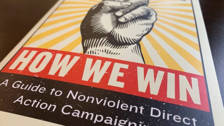 By David Swanson, Executive Director of World BEYOND War George Lakey’s new book is called How We Win: A Guide to Nonviolent Direct Action Campaigning. On its cover is a drawing of a hand holding up two fingers in what…