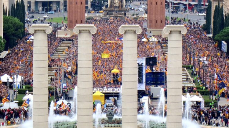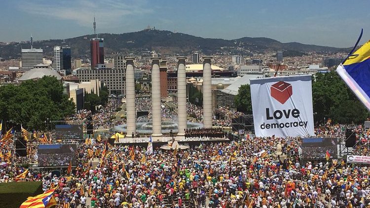 ‘Democracia’: 80,000 gather for Catalan pro-independence rally