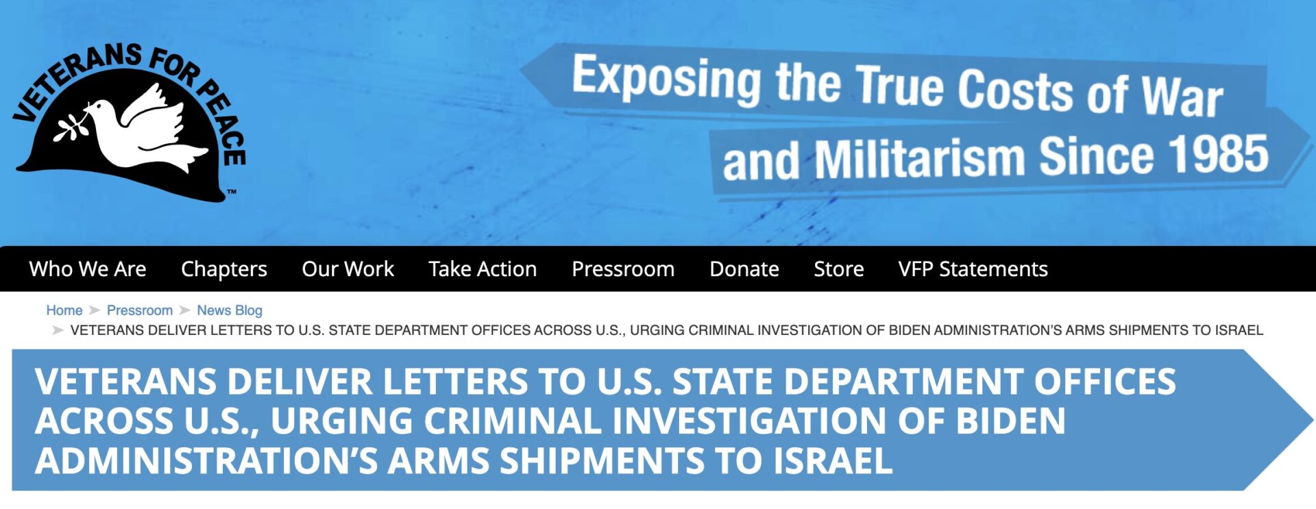 Veterans Deliver Letters to U.S. State Department Offices Across U.S., Urging Criminal Investigation of Biden Administration’s Arms Shipments to Israel