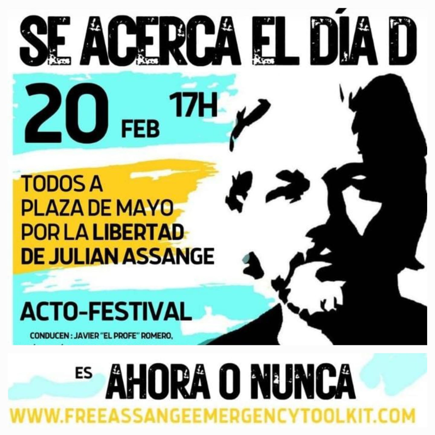 The activist group “Libertad Assange Argentina” is organizing a big event and art festival in defense of the Australian journalist Julian Assange on Tuesday 20 February, starting at 17:00. The event will take place in the emblematic Plaza de Mayo…