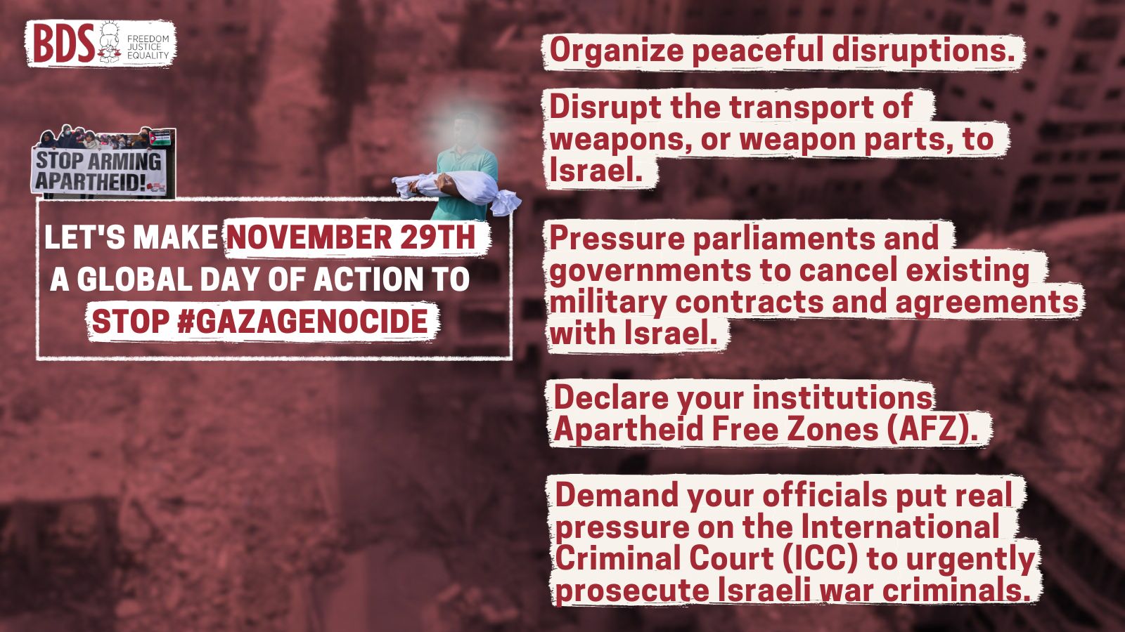 Let’s make November 29th a global day of action to stop #GazaGenocid! Millions of you have taken to the streets for the largest protests the world has seen in the last 20 years! We are grateful to each one of…