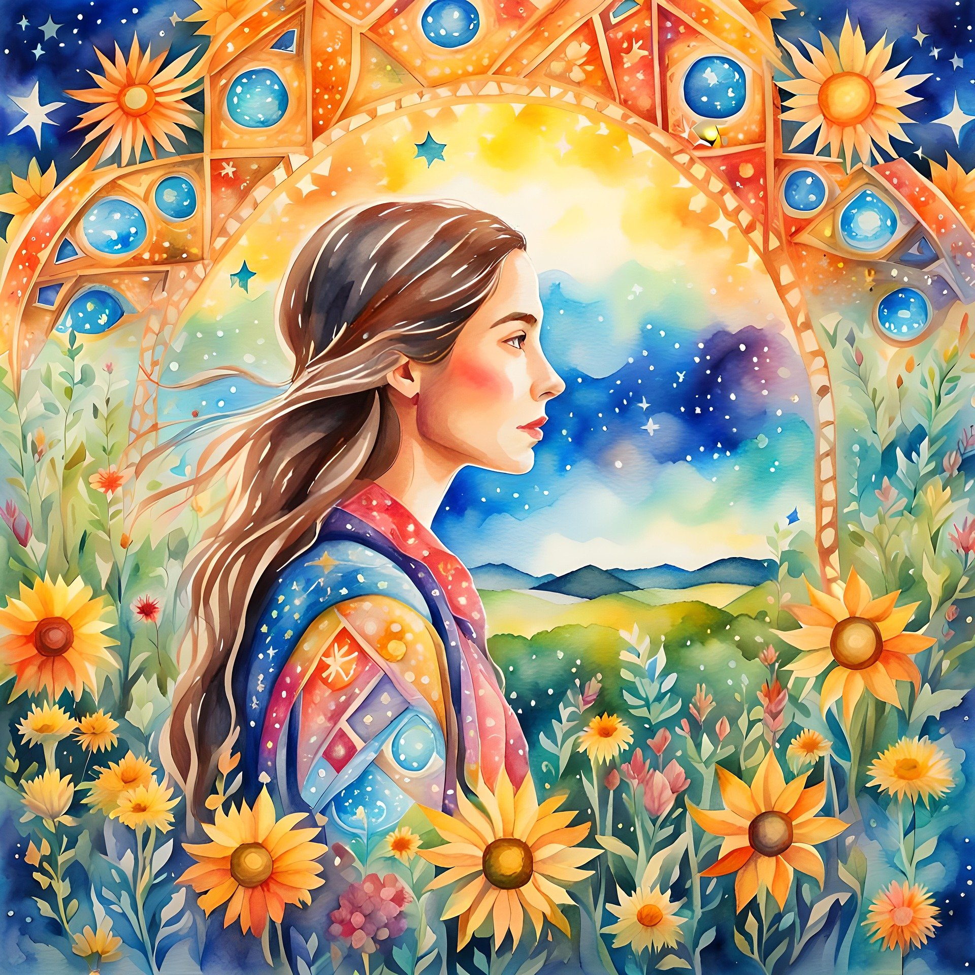 A black canopy drizzled with stars A blanket warm and cozy, over me I collect all of me, into my heart Gather stars, red flowers Ferns and round pebbles I build a garden inside of me There where I live…