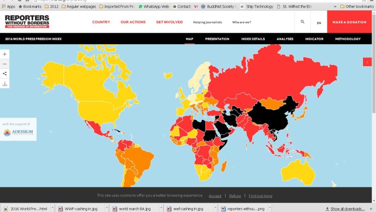 Reporters Without Borders 2016 World Press Freedom Index 1Finland8.59 2Netherlands8.76 3Norway8.79 4Denmark8.89 5New Zealand10.01 6Costa Rica11.10 7Switzerland11.76 8Sweden12.33 9Ireland12.40 10Jamaica12.45 11Austria13.18 12Slovakia13.26 13Belgium14.18 14Estonia14.31 15Luxembourg14.43 16Germany14.80 17Namibia15.15 18Canada15.26 19Iceland15.30 20Uruguay15.88 21Czech Republic16.66 22Surinam16.70 23Portugal17.27 24Latvia17.38 25Australia17.84 26Ghana17.95 27Cyprus18.26 28Liechtenstein18.36 29Samoa18.80…